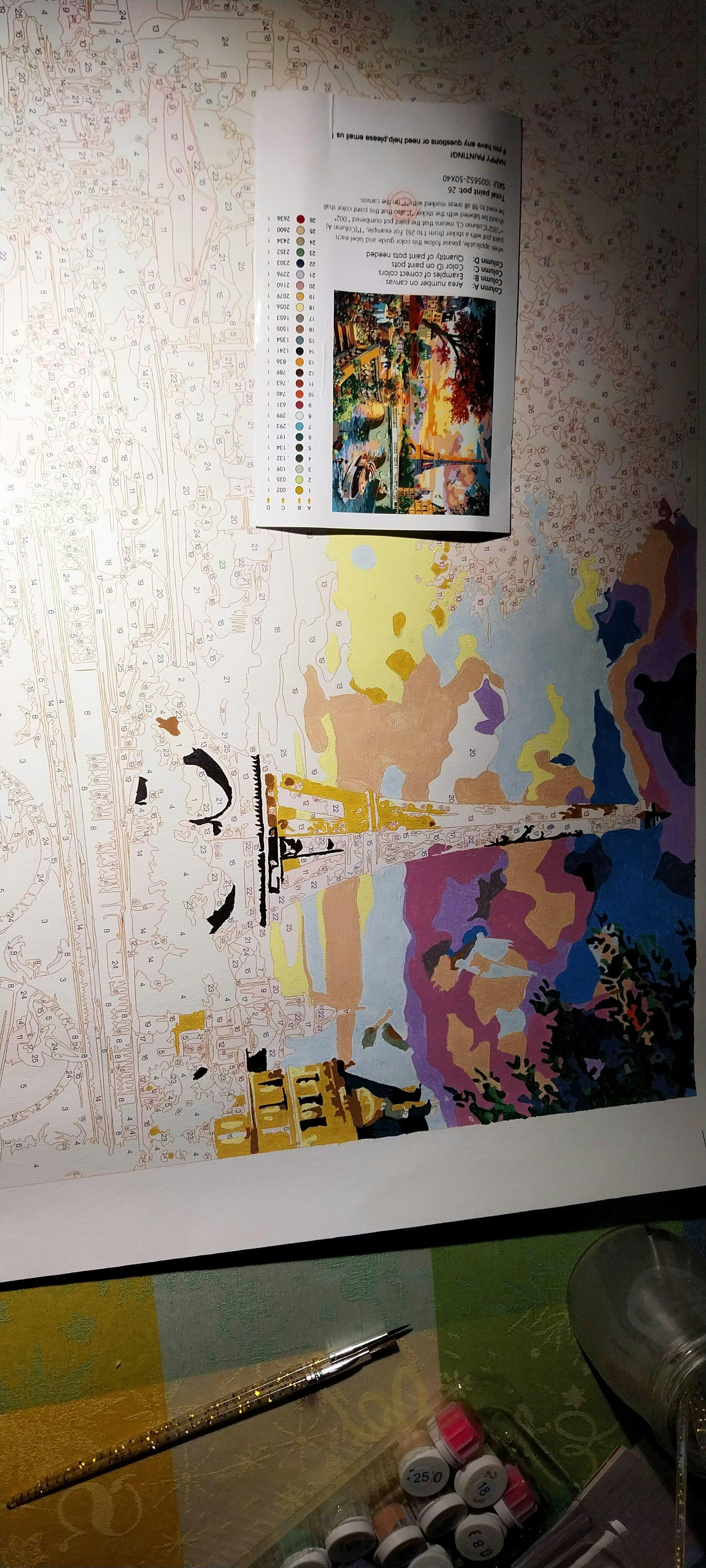 Vollständiges Malen-nach-Zahlen-Set, bereits auf einen Holzrahmen gespannt. 100 % gebrauchsfertig.
